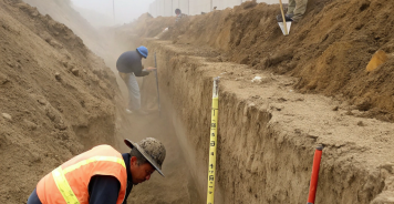 5. Засыпка траншей: после укладки труб траншеи засыпаются песком или грунтом.